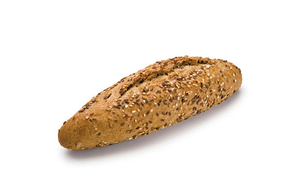 Multigrain bread roll with wheat, rye, and various seeds including sunflower, flax, and sesame. Contains sourdough and malted wheat flour for rich flavor.