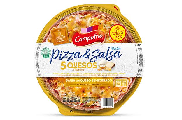 5 cheese pizza sauce made with cheddar, gouda, mozzarella, emmental, and semi-cured cheese. Contains palm and sunflower oil, tomato concentrate, and spices. Suitable for adding rich cheese flavor to pizzas.