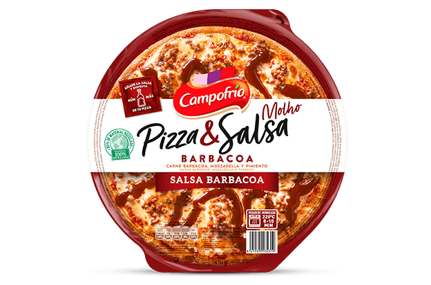 100 g pizza with cooked beef and pork (10%), mozzarella cheese (10%), barbecue sauce, wheat and rye flour base, with spices and smoke flavor.