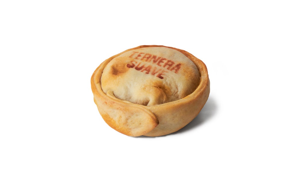 Frozen beef empanadilla with onion, tomato, green olives and roasted red pepper in a wheat flour pastry.