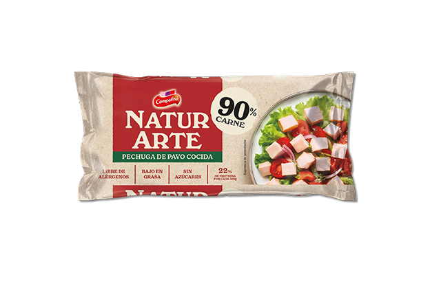 Cooked turkey breast (90%) with water, flavorings, salt, stabilizers, horseradish, blackcurrant, apple concentrate, smoke aroma, antioxidant, and preservatives.